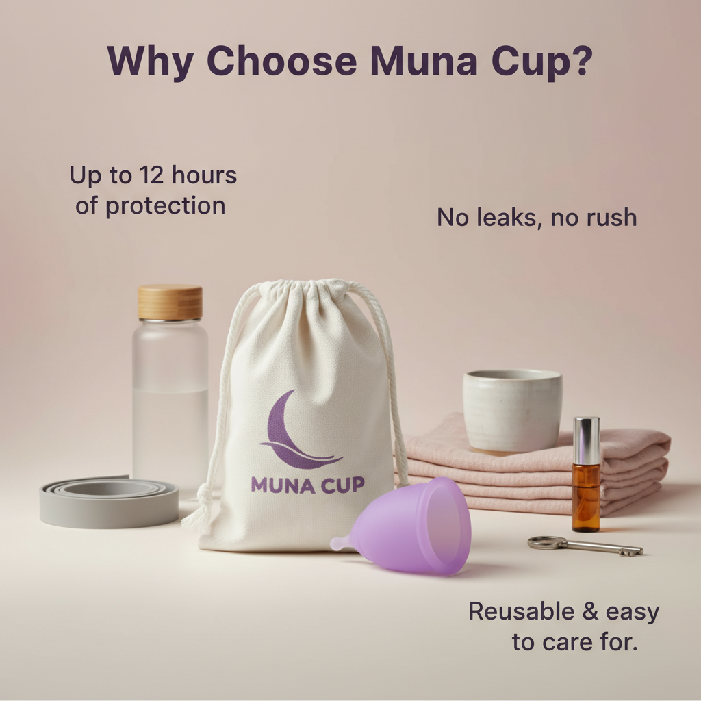 Muna Cup is a reusable menstrual cup designed for comfort, freedom, and confidence.